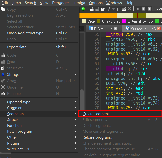 Edit - Segments - Create segment... 클릭 후, Create a new segment에서 아래와 같이 KUSER_SHARED_DATA 영역에 대한 정보 입력 진행