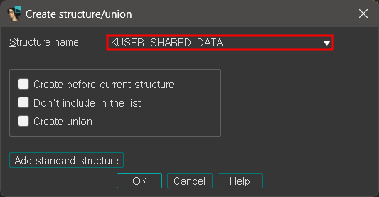 Struct name에 KUSER_SHARED_DATA 입력 진행